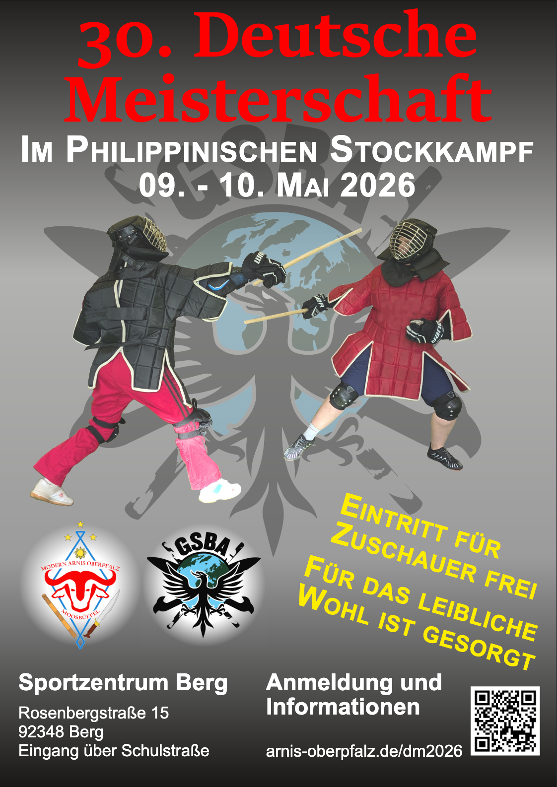 Die 30. Deutsche Meisterschaft im philippinischen Stockkampf wird am Wochenende 09.-10. Mai 2026 in Berg bei Neumarkt in der Oberpfalz stattfinden.