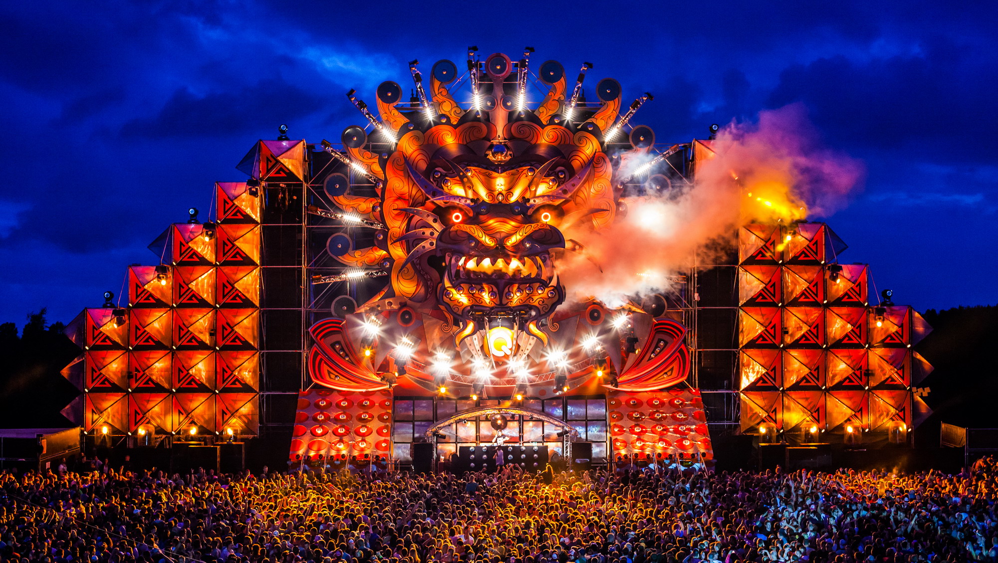 Neben dem unverkennbaren Stage Design wird auch die gesamte Show, Pyrotechnik und Licht von den Holländern auf der Q-Dance Stage gestaltet und abgewickelt.